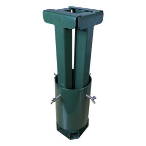 Stammaufnahme bis 16 cm, 4 Stellschrauben, Aufnahmemöglichkeit von 4 handelsüblichen Betonplatten 500 x 500 mm zur Erhöhung der Standfestigkeit.