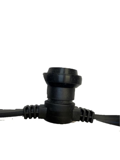 Außenlichterkette E27 verlängerbar, IP65, Abstand zwischen den Birnen: 74cm, Zuleitung: 150 cm mit schützender Silikondichtung, Schutzart-Stecker: IP65, Verlängerbar mit bis zu 20 weiteren Ketten gleichen Typs.